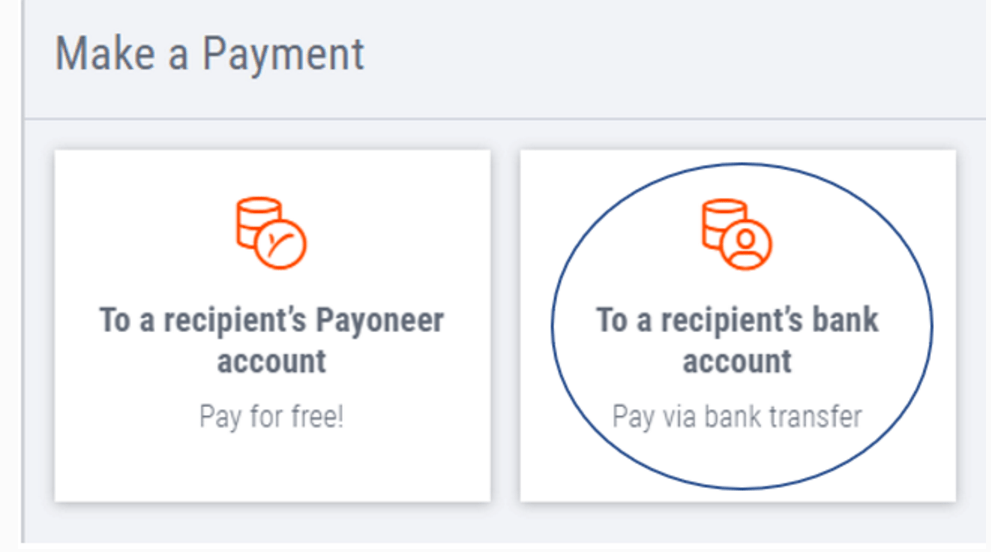 在Payoneer账户的在线支付页面,选择向收款人的银行账户在线支付。