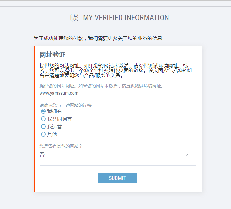 点击添加银行账户,并填写以下YMS提供的缴税memo详情: