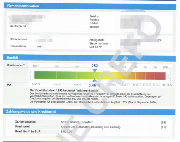 Creditreform 是一家德国第三方企业信用评级机构,可以提供公司资信报告。 智美跨境查阅到该机构报告的数据来源为企业的公开信息,以及Creditreform 主动向企业收集的信息。
