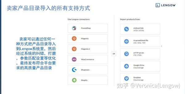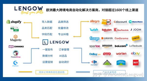 注意⚠️如果你有独立站,下图左侧任何一个建站工具,等于你的上架过程已经完成了90%,抛掉繁杂的表格,Lengow会从你的独立站直接批量抓取产品发布到Fruugo和所有第三方平台或者引流渠道。该上架过程只要分分钟。